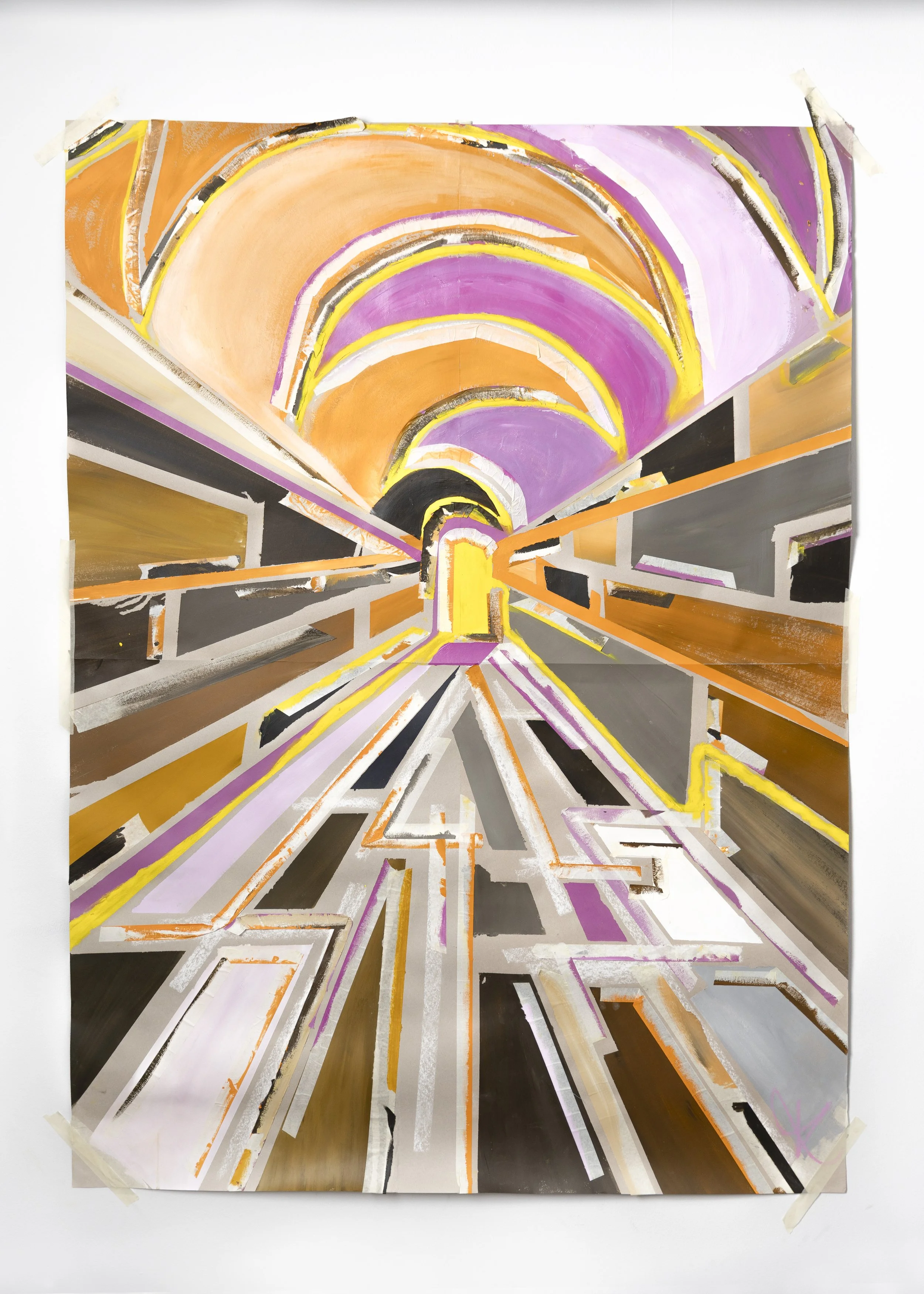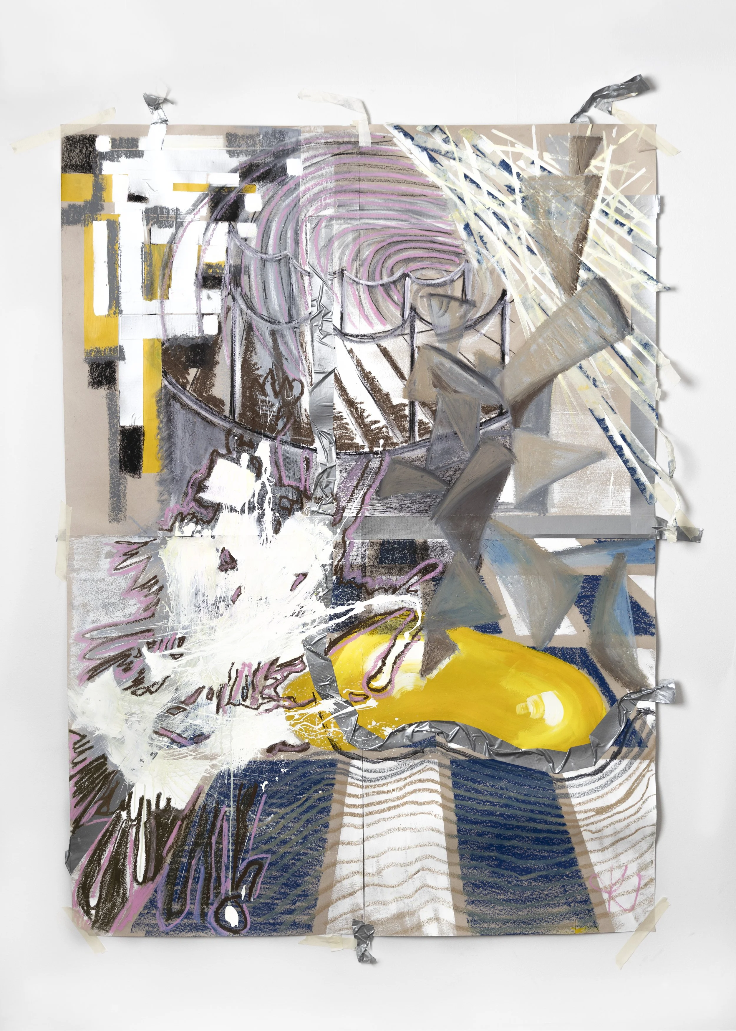 Where paint and masking tape materialize the process of discovery, suggesting finding solid ground while simultaneously being drawn towards something more revelatory.