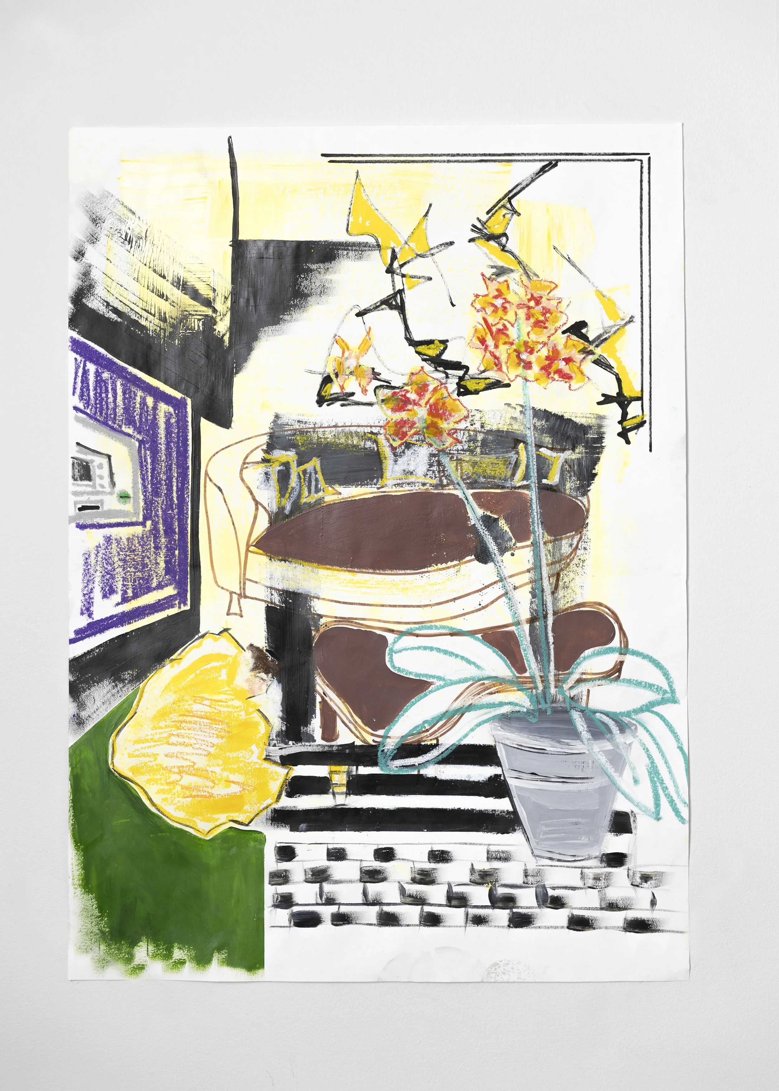 Acrylic paint with tape on paper,